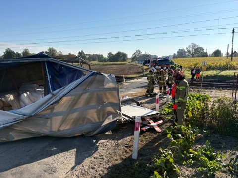 Książki. Zderzenie ciężarówki z pociągiem na przejeździe kolejowym. 54-letni kierowca trafił do szpitala [zdjęcia]
