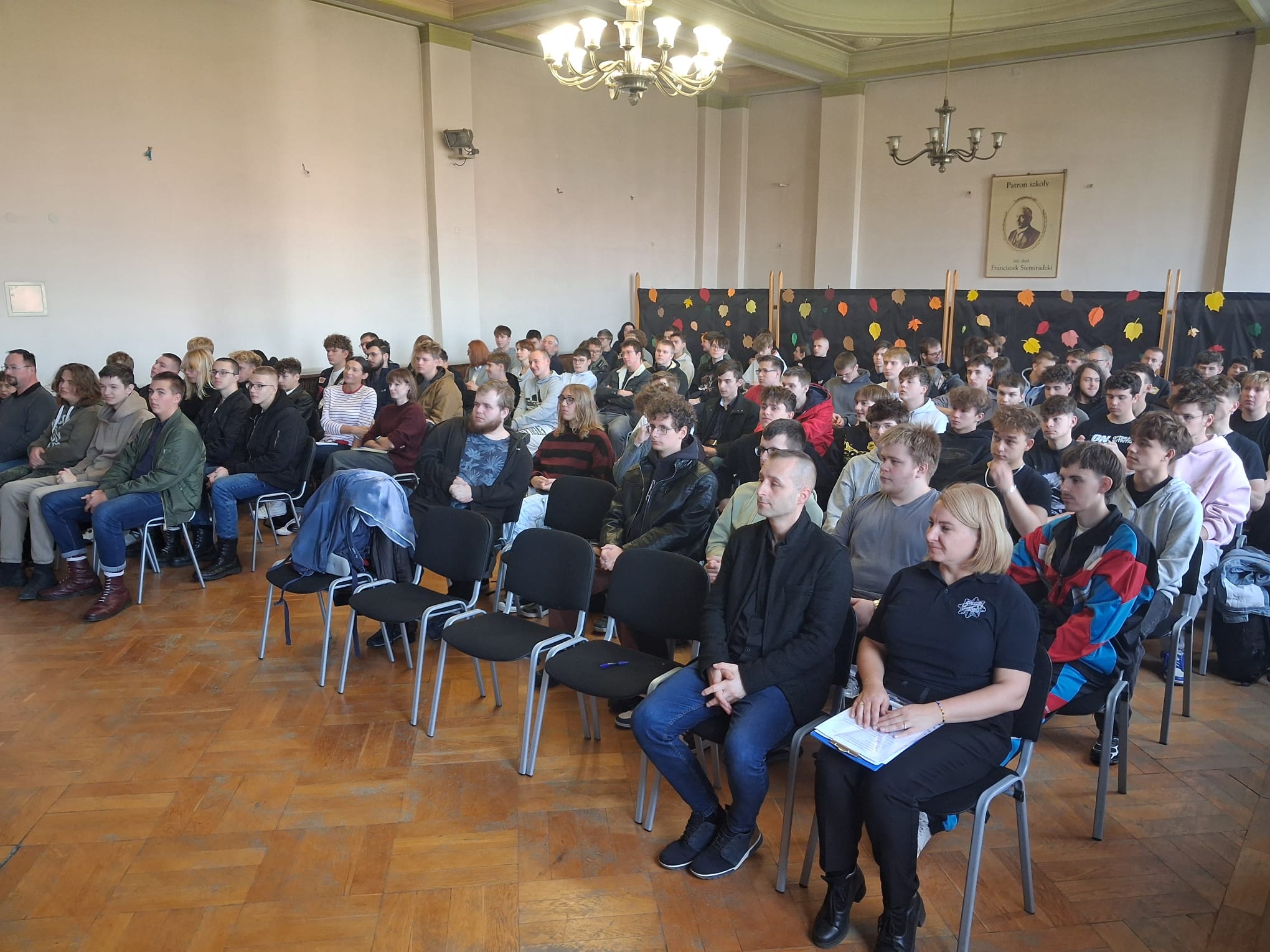 Dzielnicowi wraz z ekspertami odwiedzili Zespół Szkół Mechanicznych. Razem z uczniami dyskutowali o narkotykach i dopalaczach/fot. Damian Klich