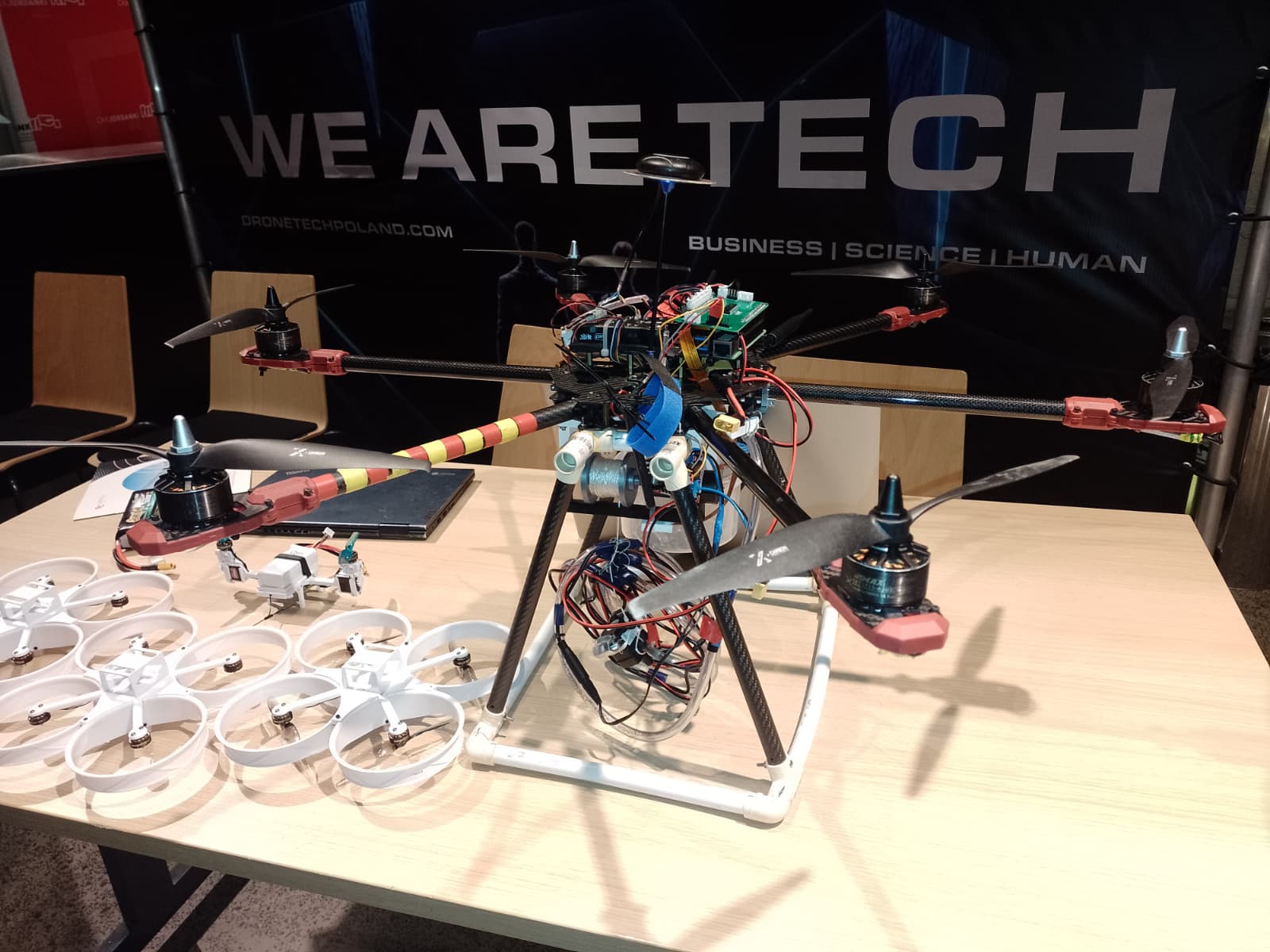 - Jesteśmy pasjonatami robotyki mobilnej, głownie tej latającej. Mamy tutaj ze sobą technologię, umożliwiającą zrzucanie małych dronów z dużego drona - opowiada Zbigniew Tomaszewski. - Duży dron może dolecieć np. w miejsce wypadku i wypuścić mniejsze drony, które swoim światłem wygrodzą linię bezpieczeństwa.