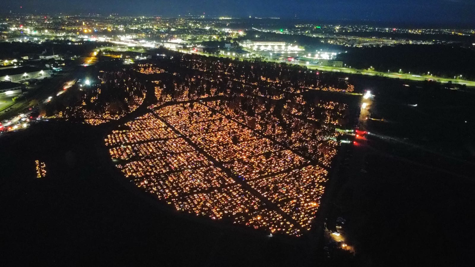 Cmentarze najpiękniej wyglądają o zmroku. Uroczystość Wszystkich Świętych [film z drona]