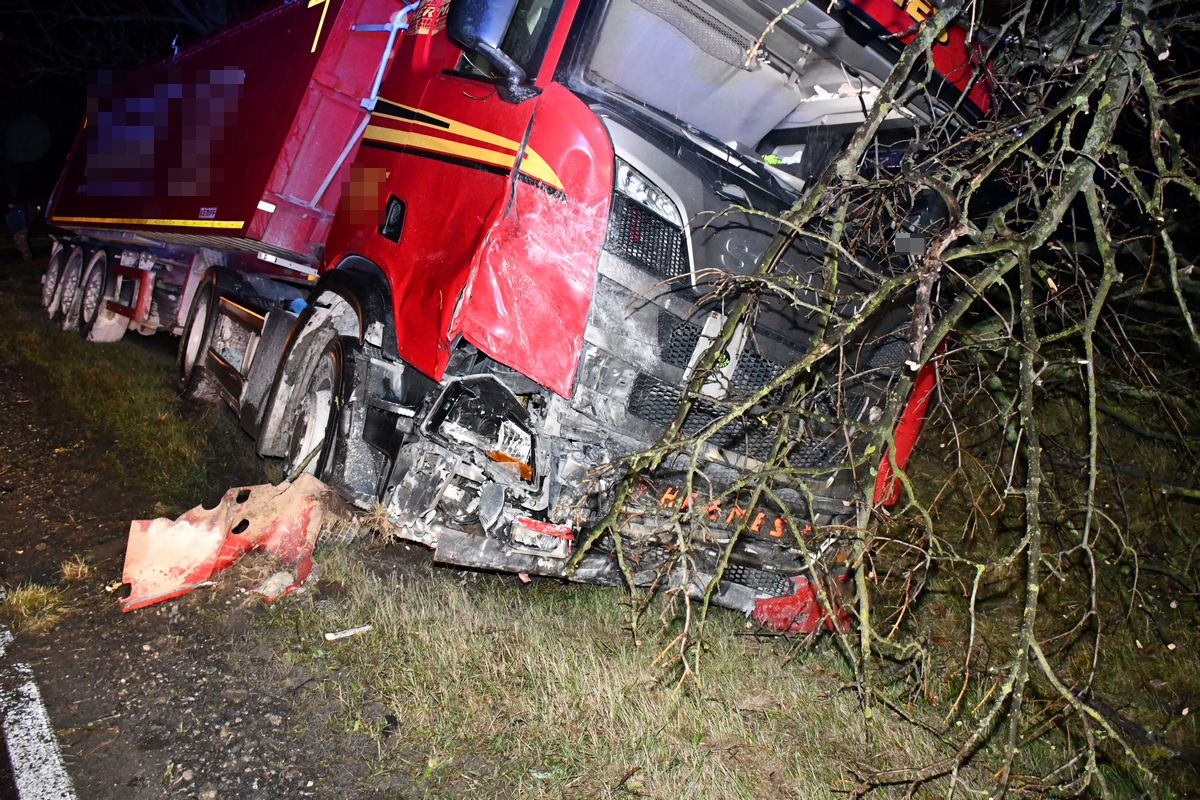 Tuż przed godz. 23 doszło do zderzenia dwóch pojazdów: osobowego i ciężarowego. Zawiniła kierująca samochodem osobowym. Nie ustąpiła pierwszeństwa.