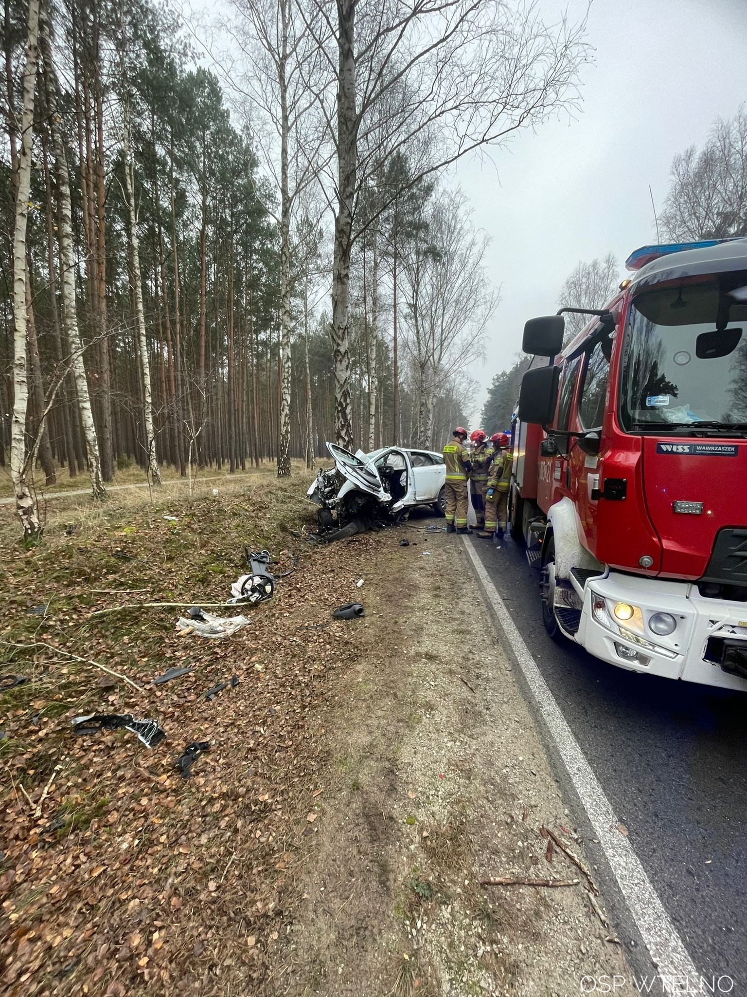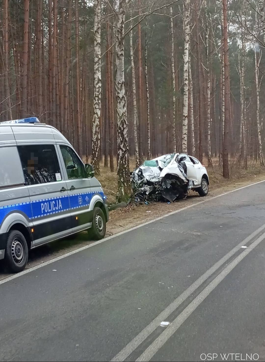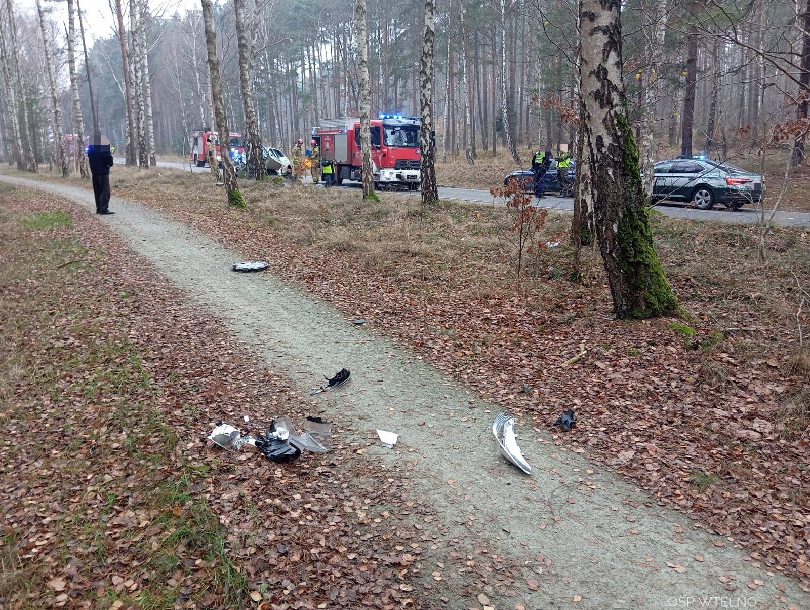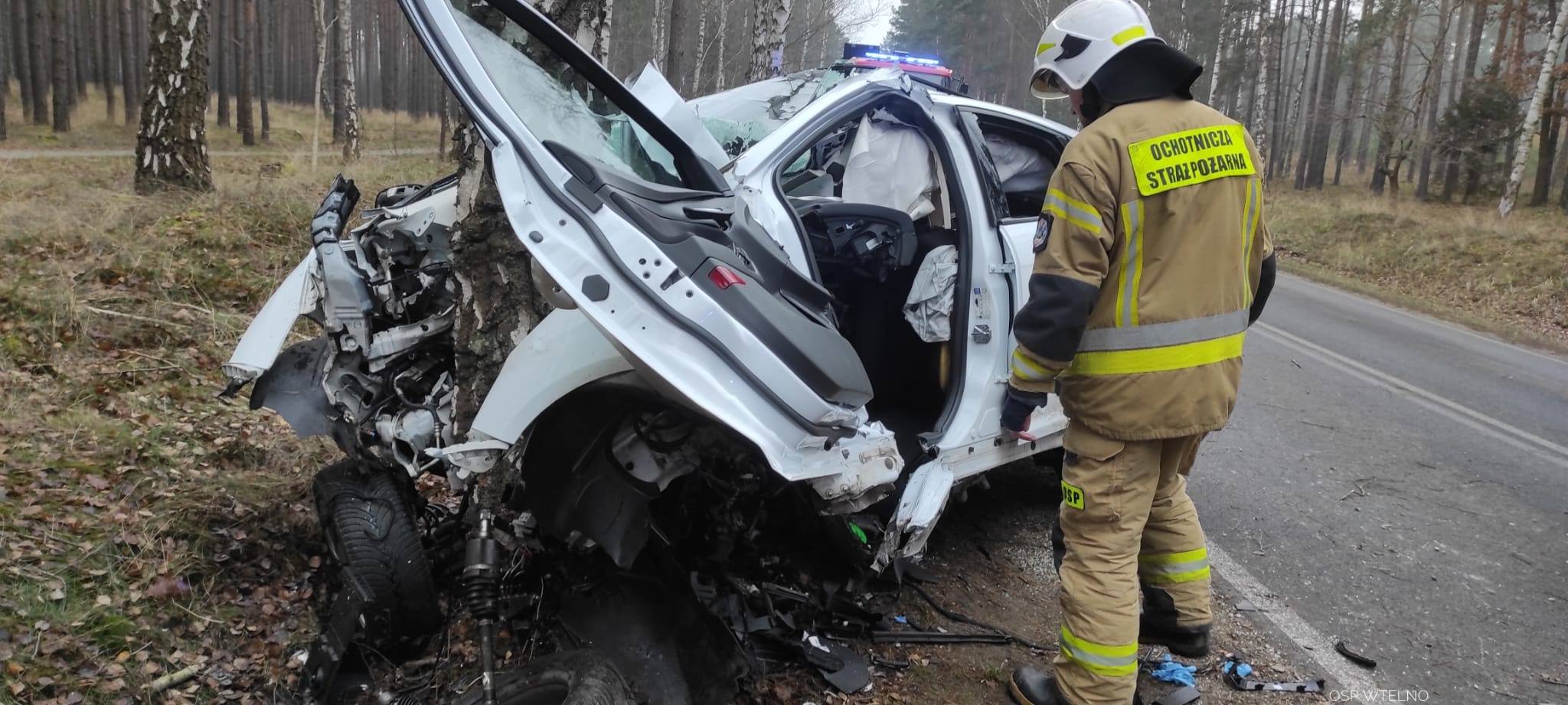 Zderzenie auta z drzewem w Bożenkowie/fot. OSP Wtelno