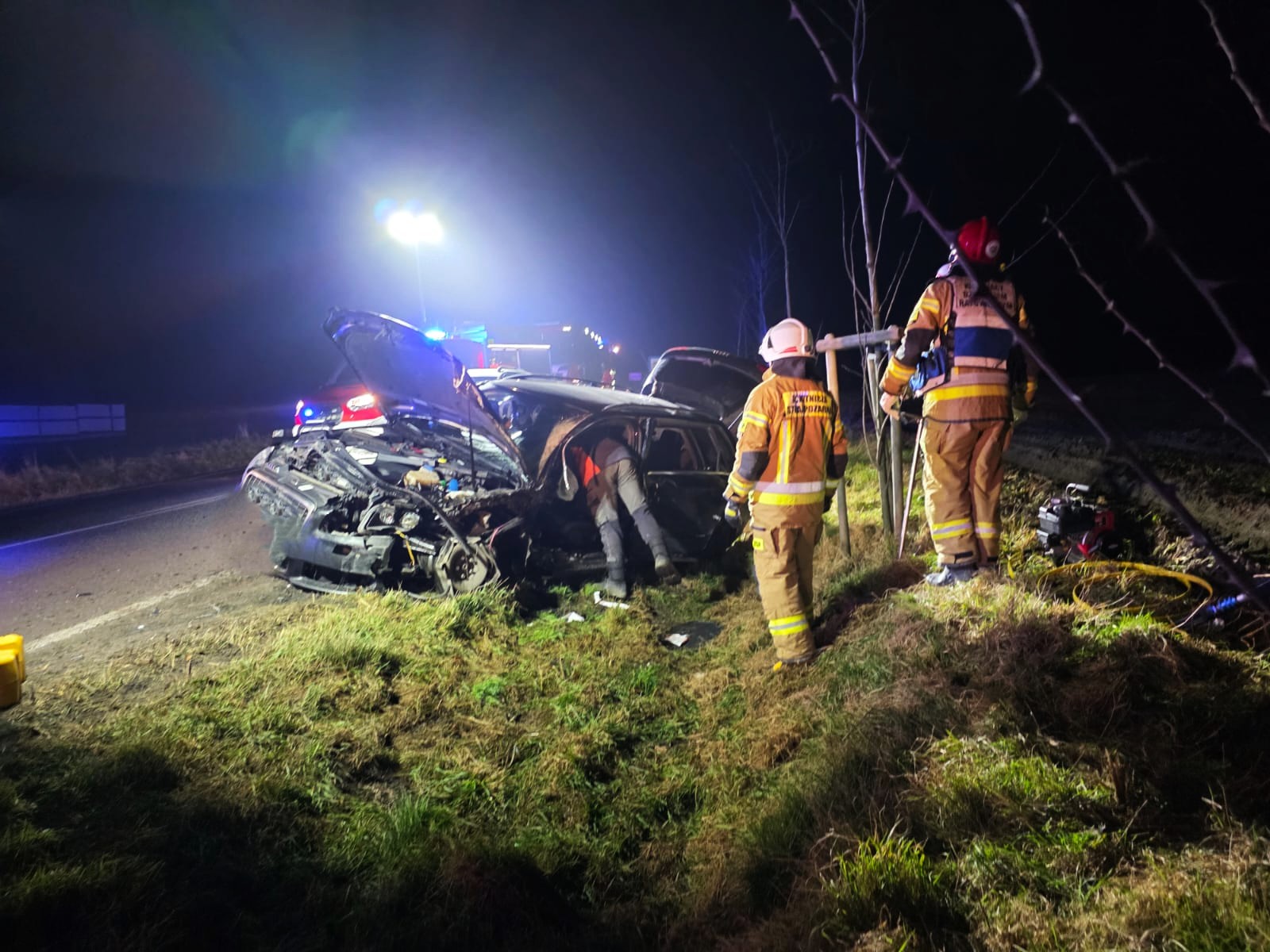 Zderzenie auta osobowego z ciężarówką we wsi Rogóźno-Zamek/fot. Komenda Miejska Państwowej Straży Pożarnej w Grudziądzu