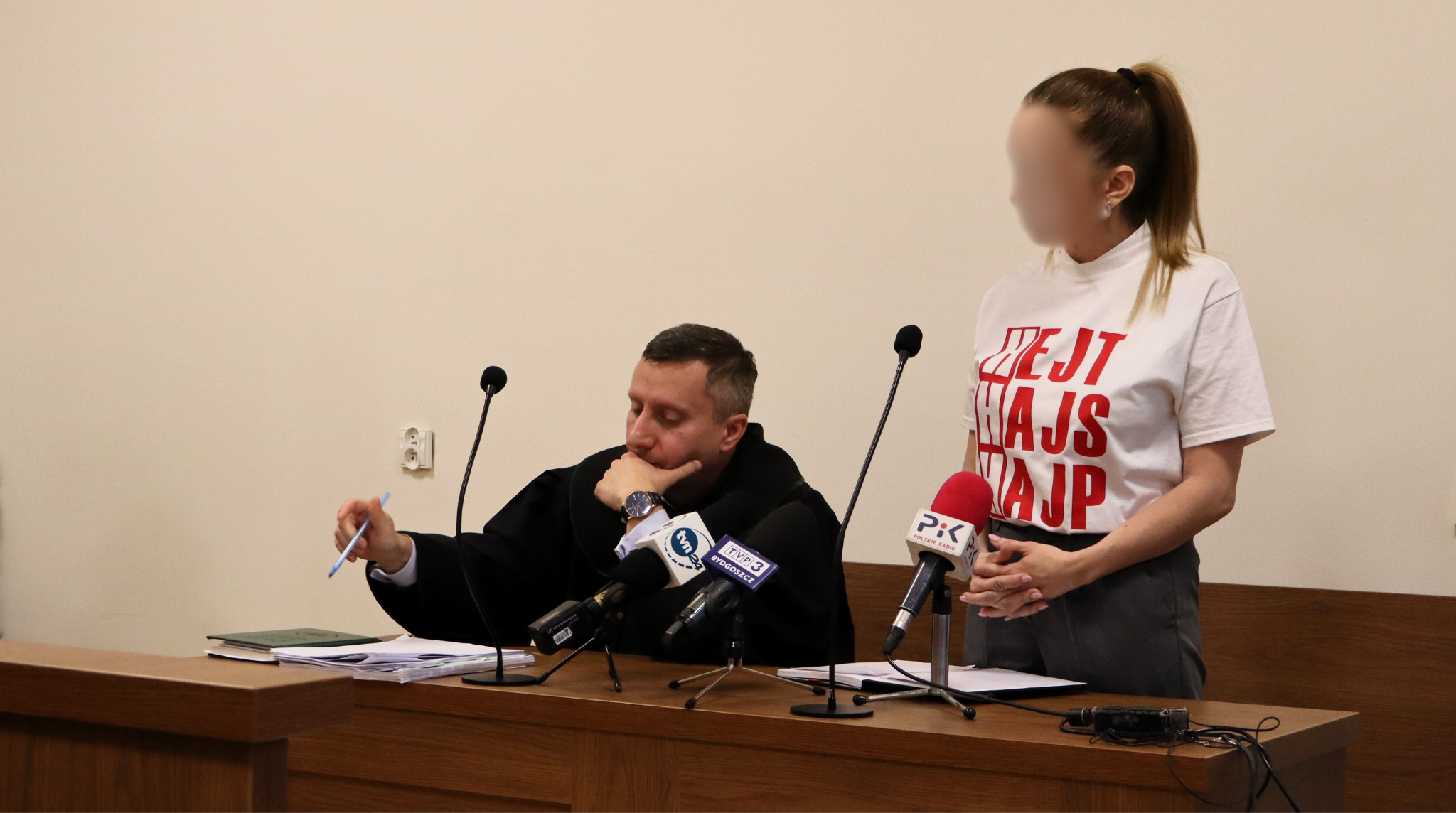Podczas środowej rozprawy w Sądzie Rejonowym kobieta nie przyznała się do zarzucanych jej czynów. Na procesie pojawiła się w koszulce z napisem: „Hejt w ratuszu, pamiętacie czy zapomnieliście?”.