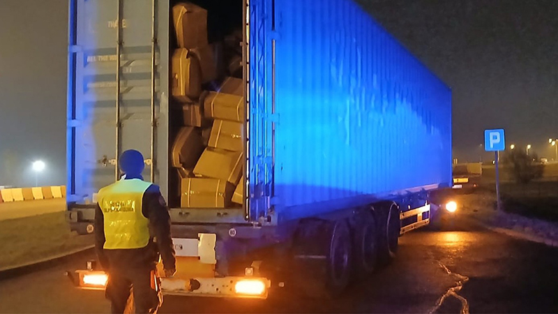 Gdy służby prowadziły kontrolę, do magazynu podjechał ciągnik siodłowy z kontenerem, w którym było prawie 13 ton tytoniu. W jego wnętrzu znajdowało się kolejne blisko 13 ton tytoniu bez polskich znaków akcyzy, które zostały zabezpieczone. Łącznie służby zabezpieczyły blisko 63 tony tytoniu. Gdyby trafił on do obrotu, straty Skarbu Państwa mogłyby wynieść około 88 mln zł.