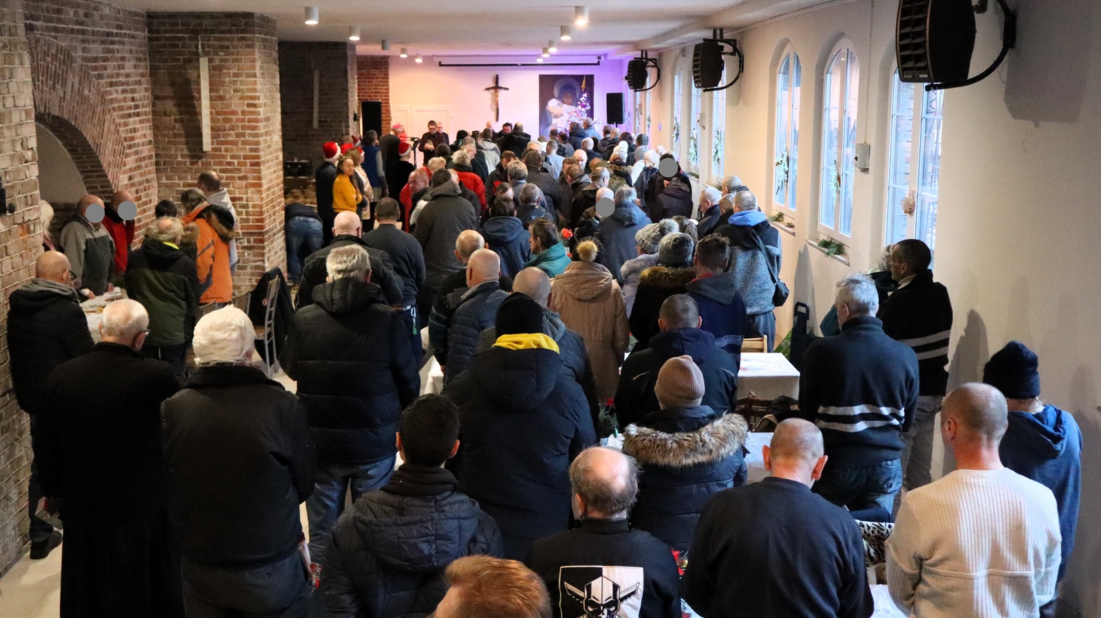 Przy świątecznym stole w Oratorium św. Jana Pawła II, którego gospodarzem są jezuici zasiadło ponad 150 osób. Życzenia przybyłym złożył biskup bydgoski ks. Krzysztof Włodarczyk.