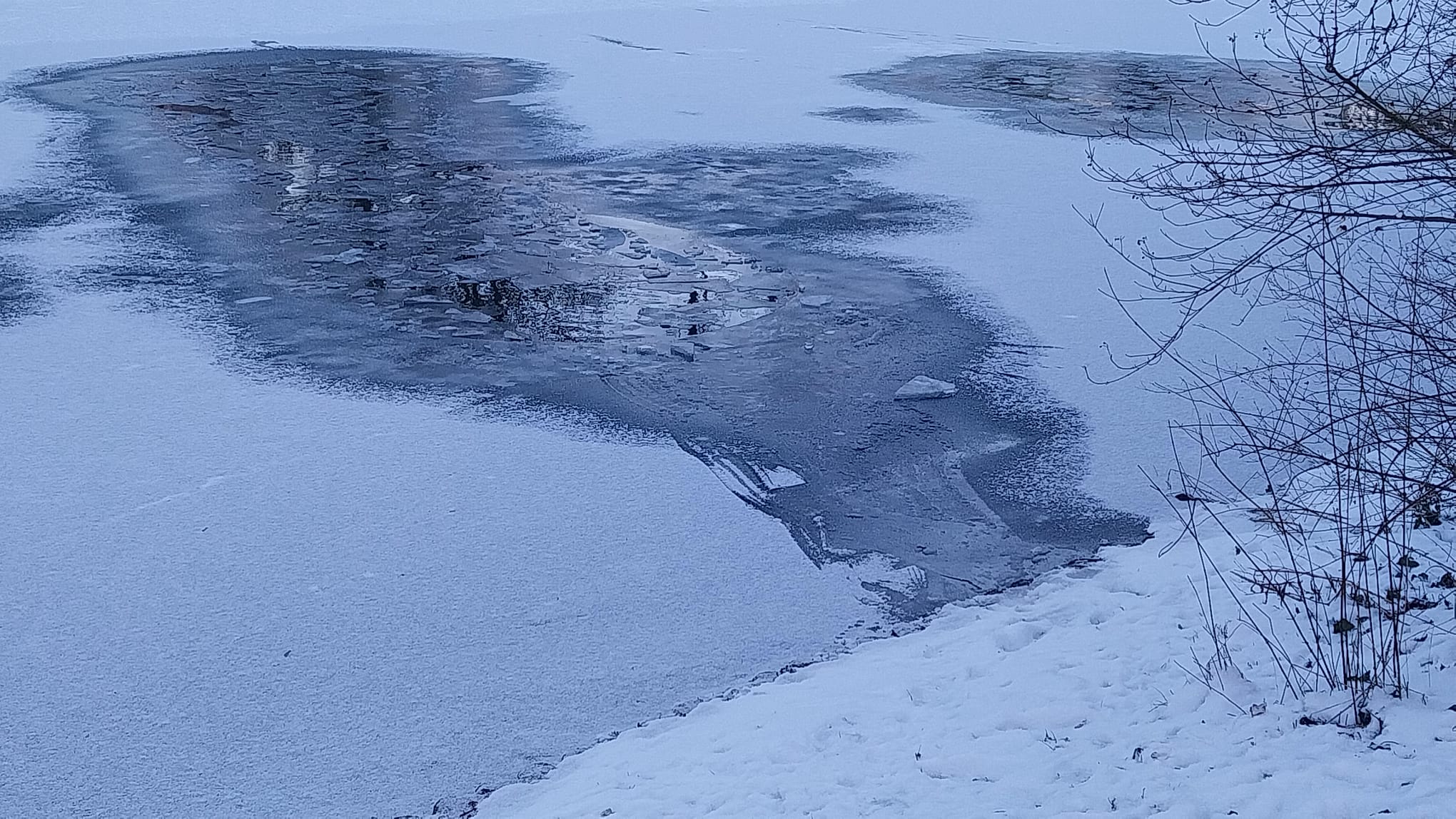 Miejsce, w którym pod dziewczynkami załamał się lód/fot. Marcin Kupczyk