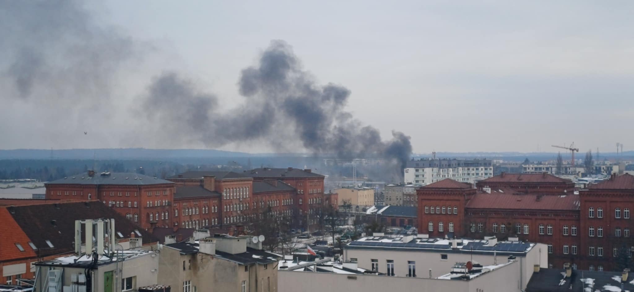 Do pożaru doszło na pętli przy ul. Rycerskiej w Bydgoszczy. Unoszący się nad miastem słup czarnego dymu widać było z daleka.