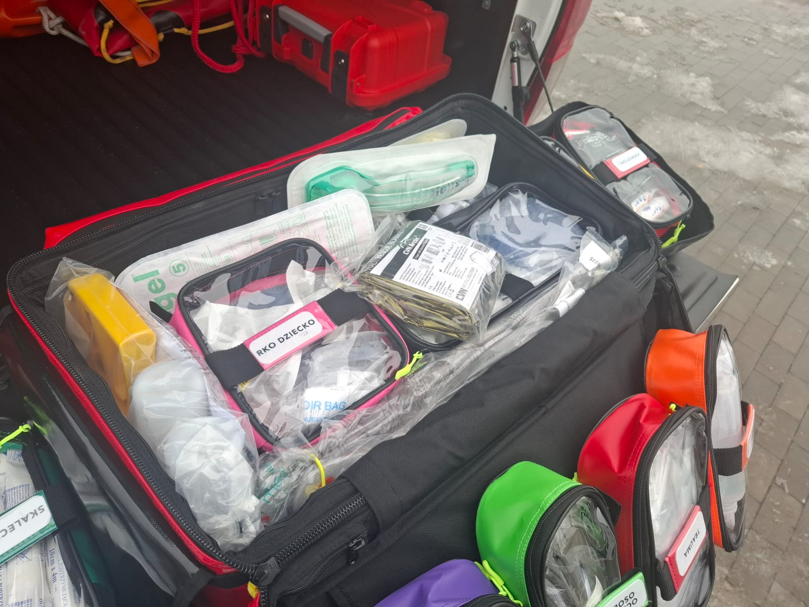 - Na ten samochód czekaliśmy naprawdę długo - mówi Marek Popek z Regionalnego Wodnego Pogotowia Ratunkowego. Opowiedział również o wyposażeniu jednej z toreb. - Są różne rodzaje masek, materac lodowy, pasy ratownicze typu Węgorz, kaski, skafandry, buty specjalistyczne czy deska ortopedyczna - wymienia.