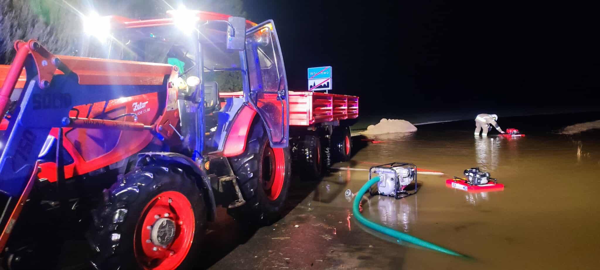 W niedzielę ok. godz. 17 strażacy z OSP Jeziora Wielkie zostali zadysponowani do zalanej posesji i drogi dojazdowej w miejscowości Włostowo/ Fot. OSP Jeziora Wielkie