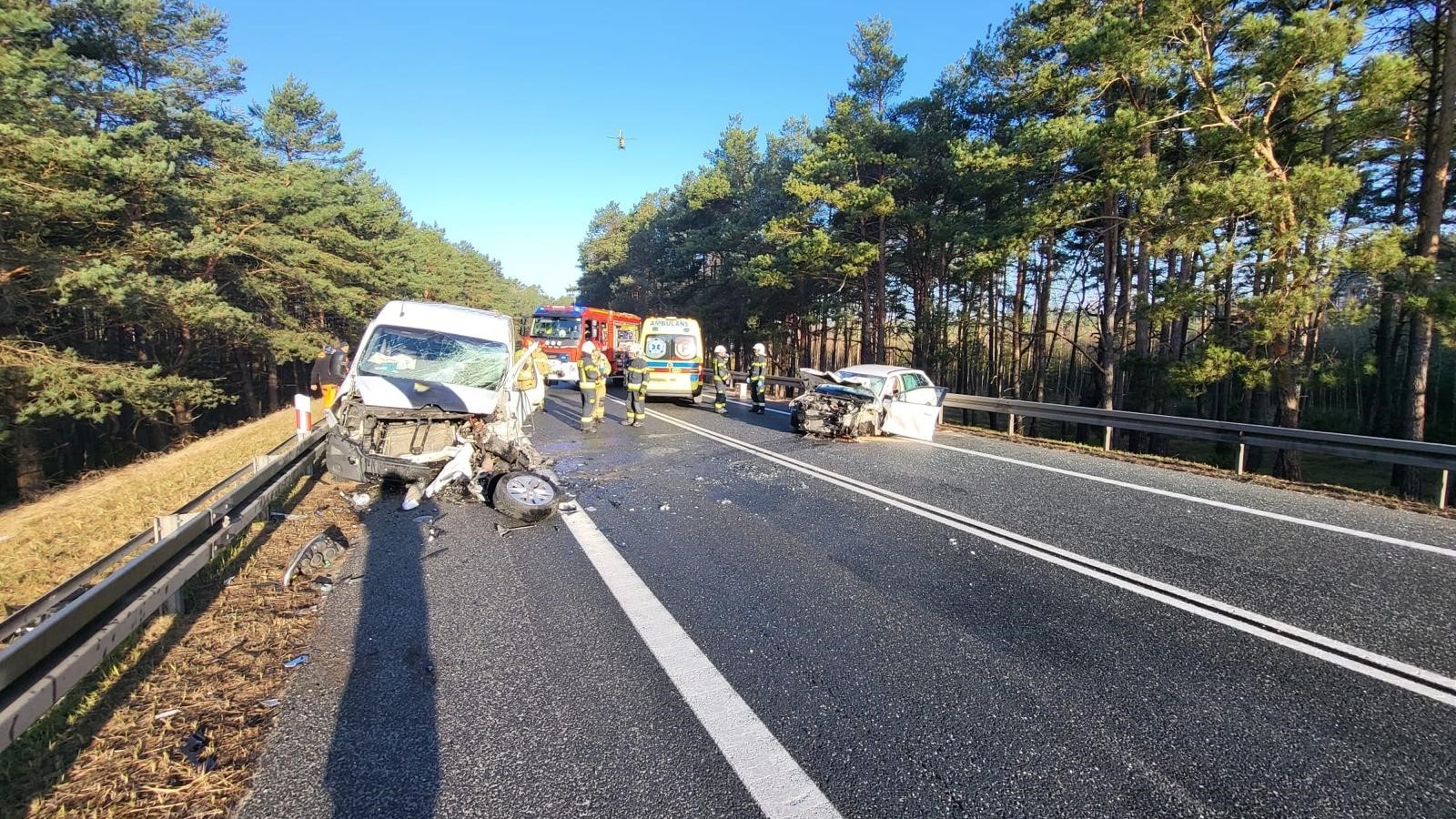 Dwie osoby ranne po zderzeniu osobówki z dostawczakiem na DK 10 w Przyłubiu/fot. KM PSP Bydgoszcz