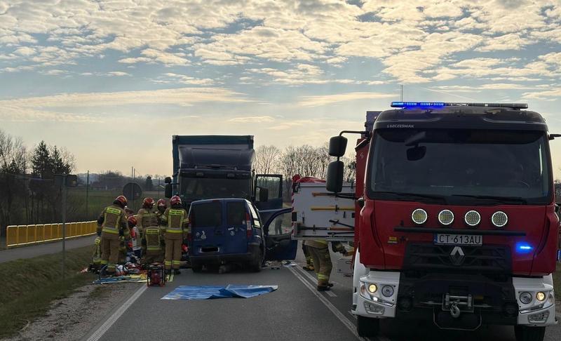 Śmiertelny wypadek w powiecie wąbrzeskim. Zderzenie ciężarówki z osobówką [zdjęcia]