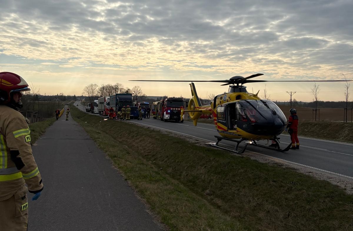 Na miejscu zdarzenia pojawił się m.in. śmigłowiec LPR. Ruch jest zablokowany. Utrudnienia mogą potrwać do ok. 12:30.