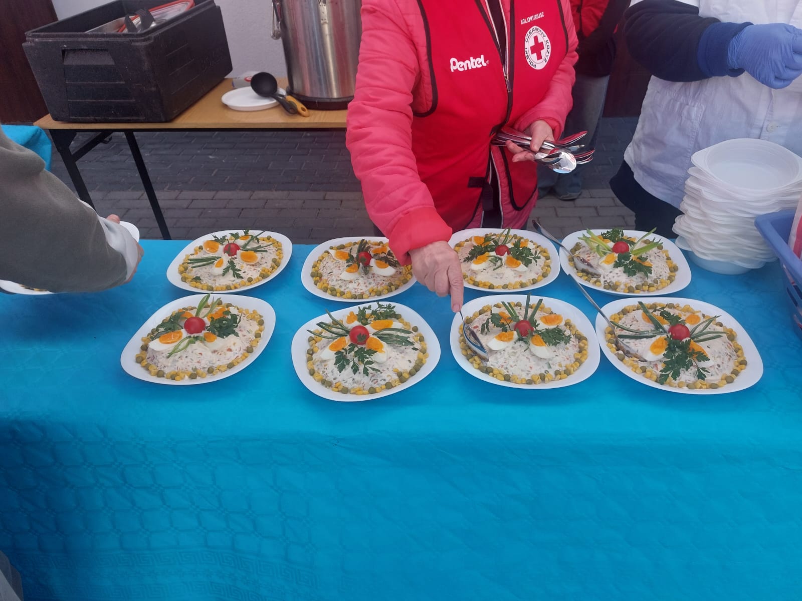 Pomoc przygotowano dla ponad 150 osób. Na stole zastawionym przez wolontariuszy bydgoskiego PCK były między innymi: żurek, sałatka, bigos, jajka i słodycze. Dla podopiecznych ważne było jednak także to, że dostali jedzenie dla swoich pupili.