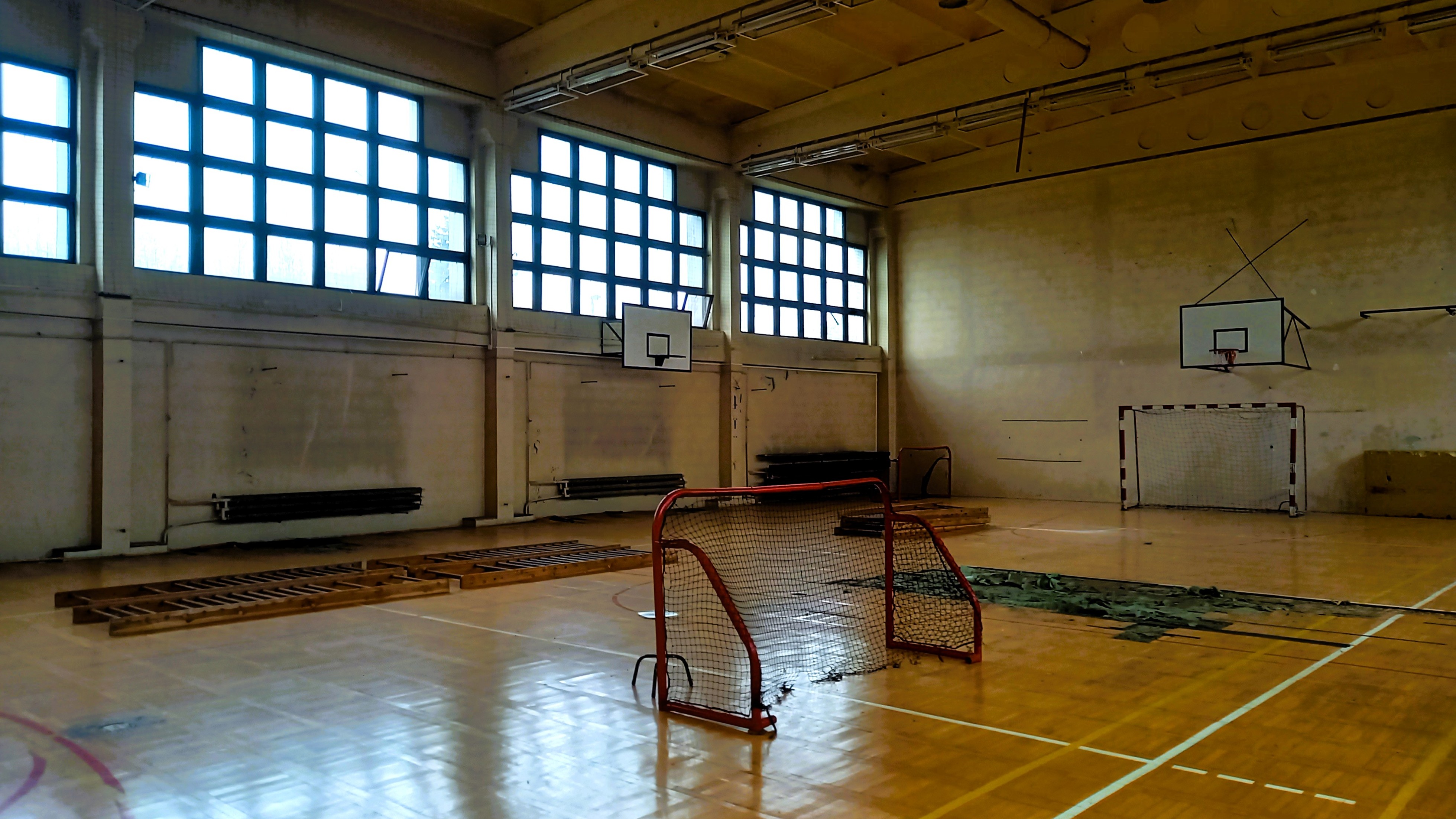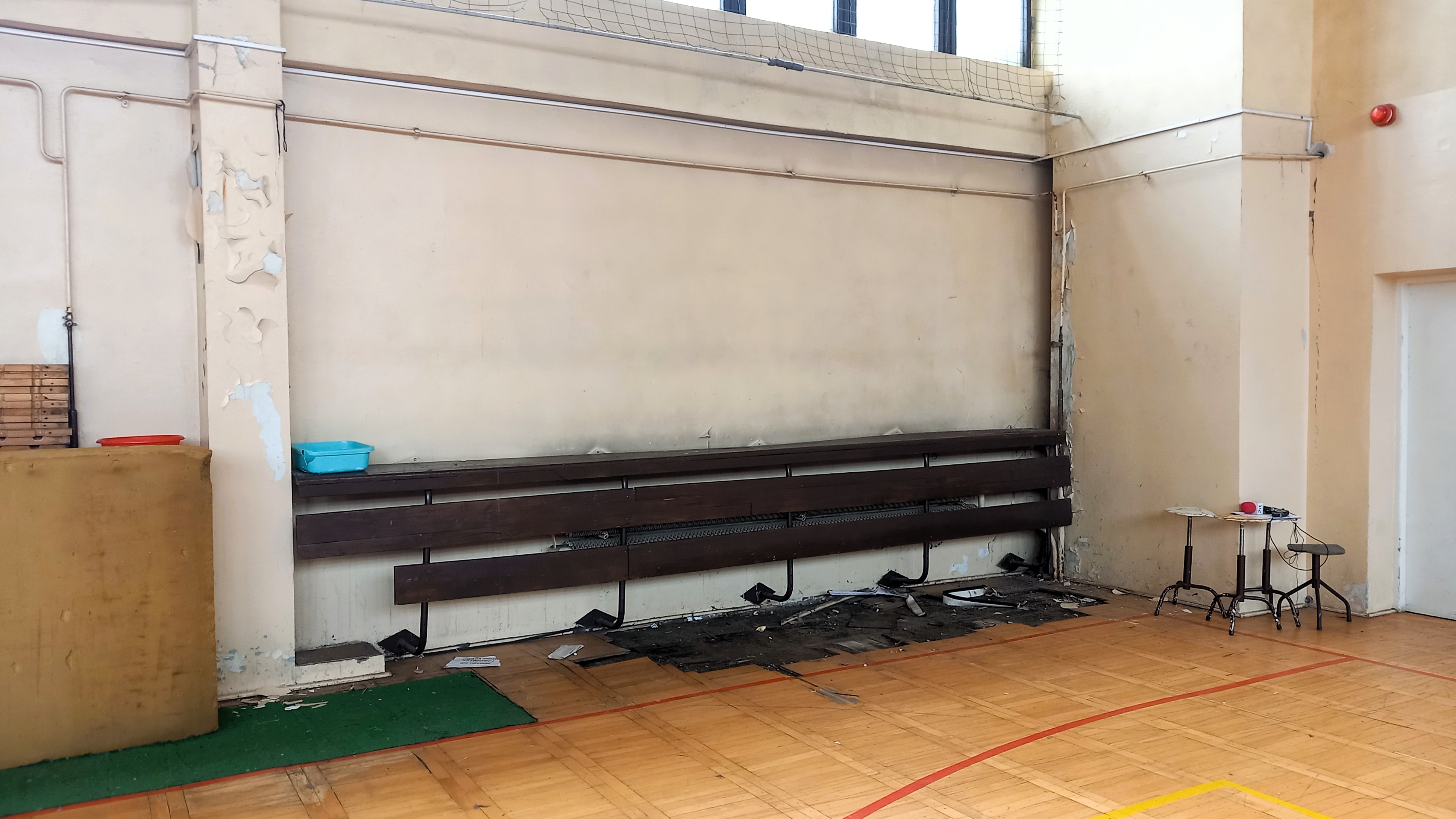 Zdewastowany parkiet, odpadający tynk. Tak obecnie wygląda sala gimnastyczna, która stanęła na bydgoskich Bielawach w latach 80. XX wieku.
