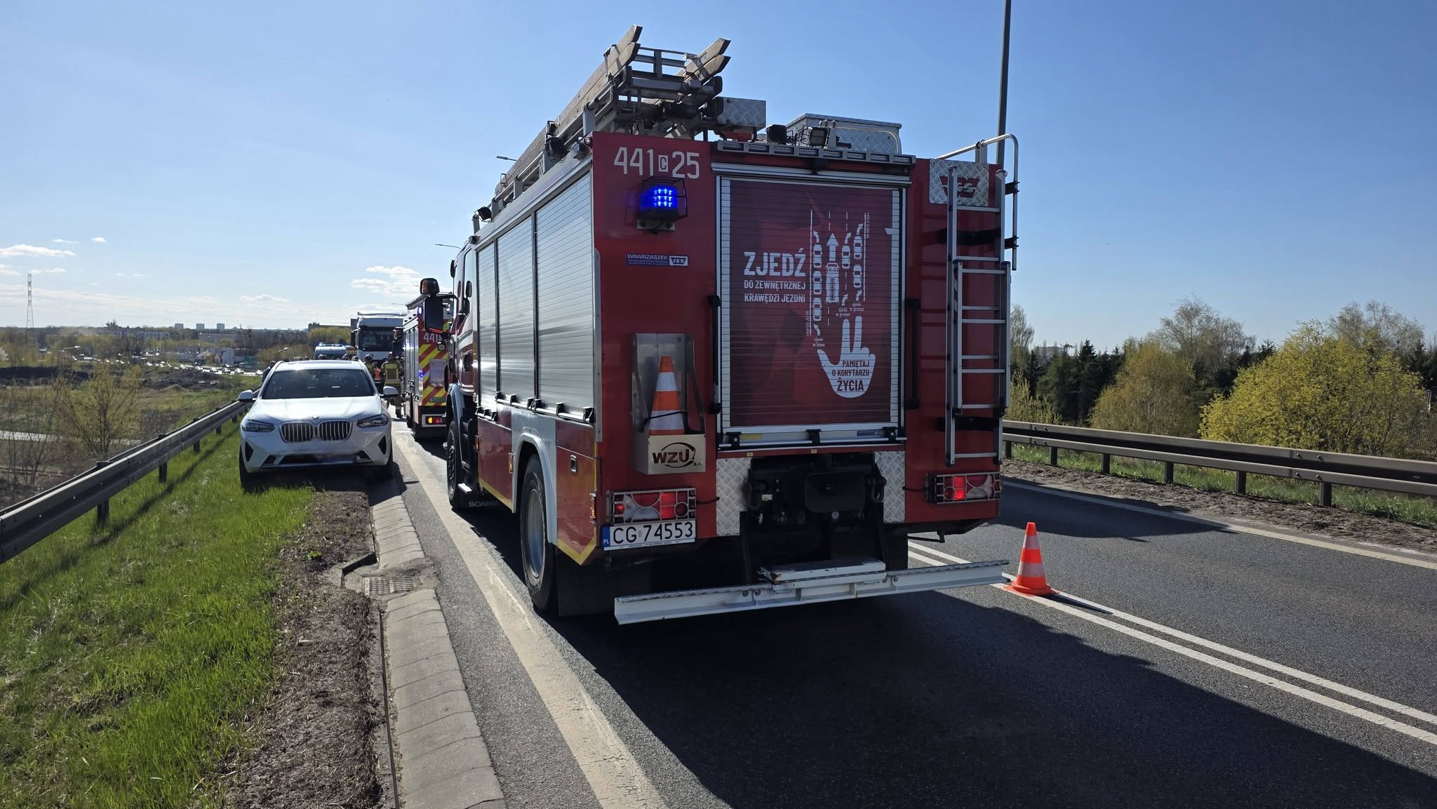 Do wypadku doszło ok. godz. 15:30. Na miejscu pracują jeszcze trzy zastępy straży pożarnej. Ruch pojazdów w miejscu wypadku odbywa się wahadłowo. Tworzą się korki. Więcej informacji wkrótce.