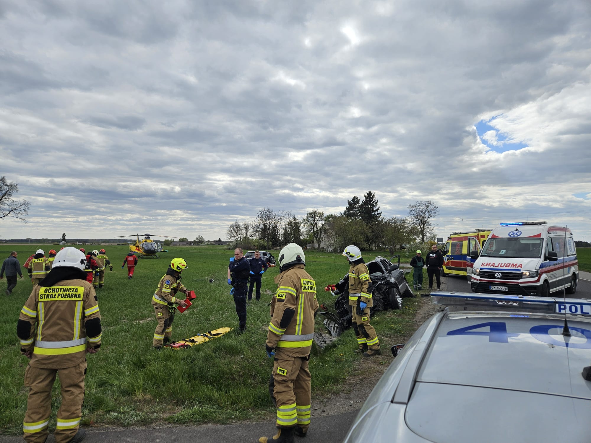 Do zdarzenia doszło w poniedziałek po godz. 14:00. Na miejscu zdarzenia interweniowały trzy zastępy straży pożarnej, zespoły ratownictwa medycznego oraz śmigłowiec Lotniczego Pogotowia Ratunkowego.