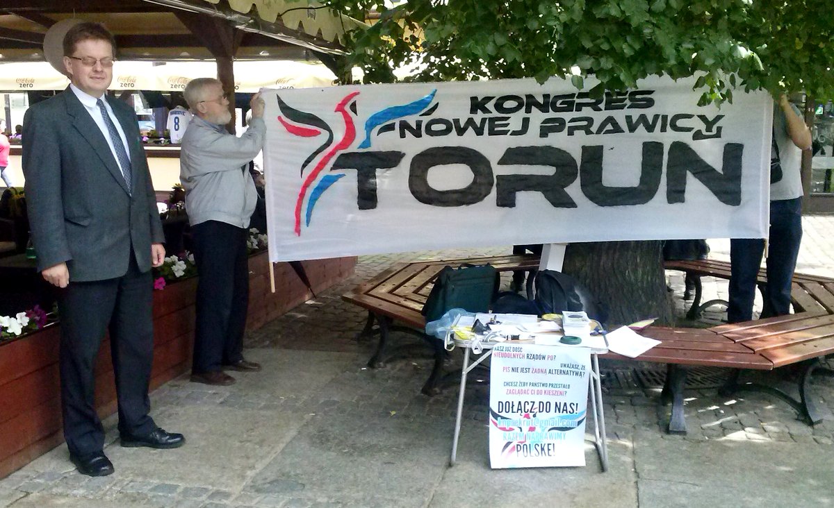 "Chcemy uświadomić mieszkańcom, do jakiego stopnia wszyscy jesteśmy okradani. PO, PiS, SLD i PSL zadłużyli Polskę na ponad 800 mld zł" - tak pod pomnikiem Mikołaja Kopernika w Toruniu mówili członkowie Kongresu Nowej Prawicy Janusza Korwin-Mikkego.