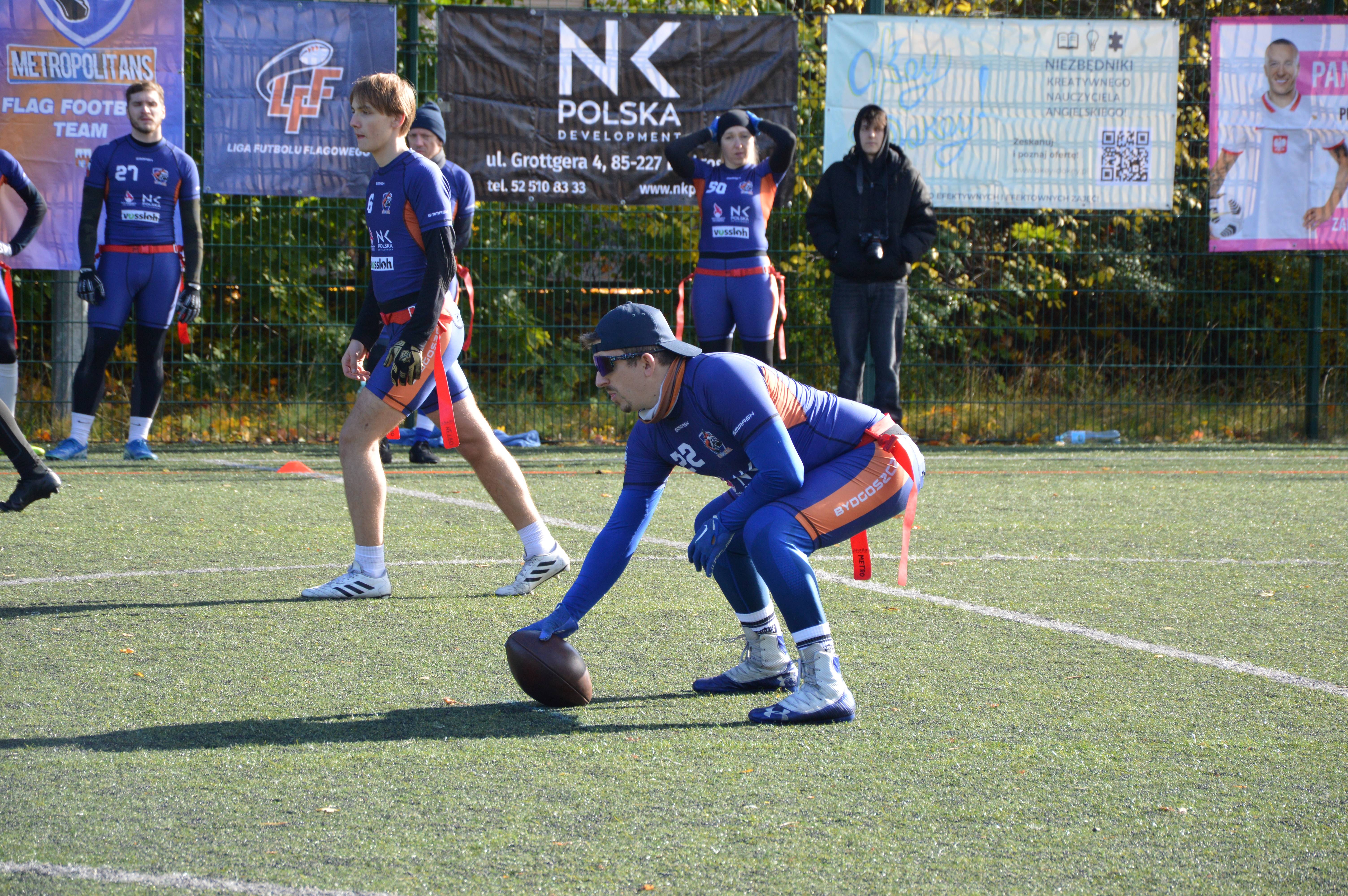 O tym, czym w ogóle jest wspomniana dyscyplina, opowiedział prezes klubu Metropolitans, Krzysztof Marchlewski. – To odmiana futbolu amerykańskiego, w której ograniczamy kontakt fizyczny, nie ma przewracania zawodnika z piłką. Wiele zasad jest podobnych, jak zdobywanie jardów i przyłożeń. Różnica polega też na tym, że drużyny są pięcioosobowe – powiedział rozmówca.