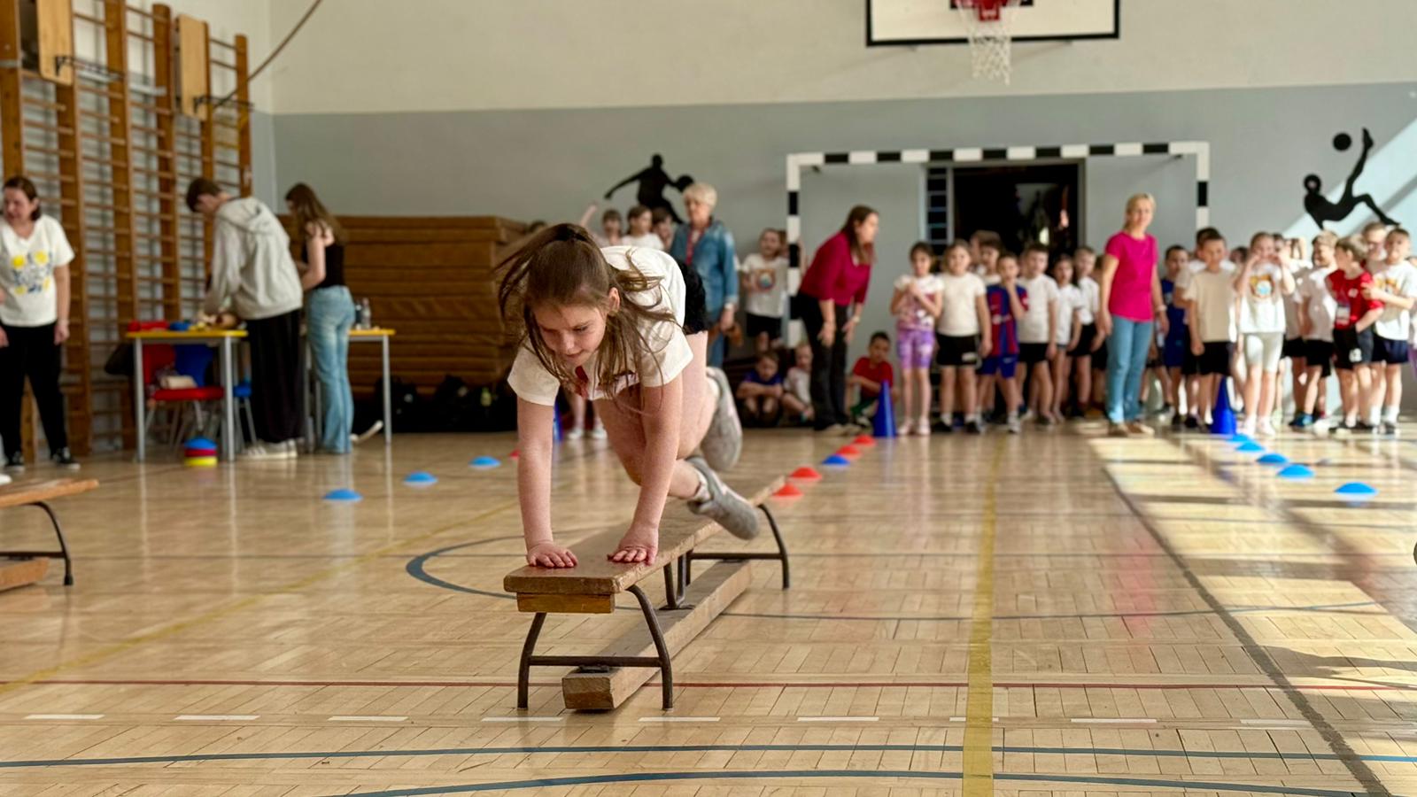 - Najpierw musieliśmy zrobić slalom, potem przejść po równoważni i przez hula-hop – mówiła Ania z klasy II B. Wiktor z tej samej klasy przyznał, że w drugiej rundzie najtrudniejsze było przenoszenie hula-hop... brzuchem. - Mieliśmy z tym dużo śmiechu, zabawy, a najśmieszniej było, jak hula-hop spadało i trzeba było je podnieść...