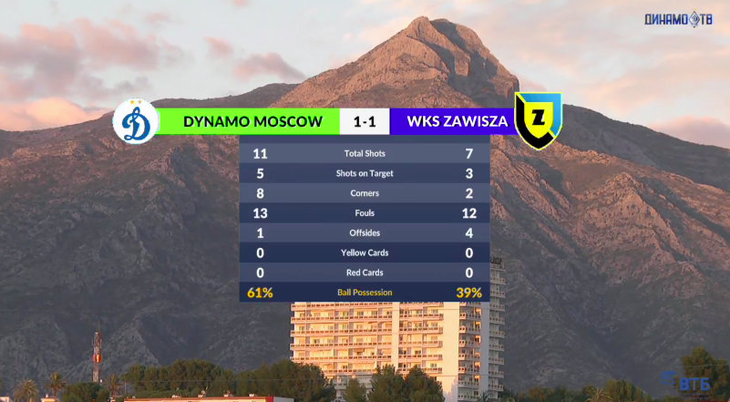 Od remisu 1:1 z Dynamem Moskwa zespół Zawiszy Bydgoszcz rozpoczął ostatni etap przygotowań do rundy wiosennej 1. ligi piłkarskiej. Fot. Zrzut ekranu z wideo relacji Dinamo TV