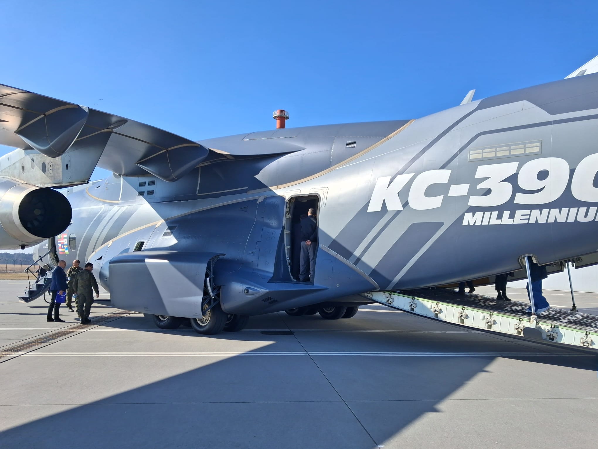 Nowoczesny wojskowy samolot transportowy Embraer KC-390 Millennium - nazywany „podniebnym potworem" - można było zobaczyć z bliska w Wojskowych Zakładach Lotniczych nr 2 w Bydgoszczy.