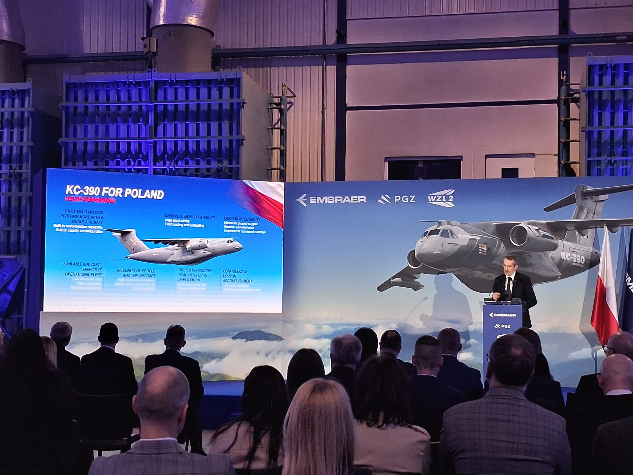 - Jest to samolot, który potencjalnie może być wykorzystywany przez polską armię. Jego zakup na wyposażenie stanowiłby ważny punkt w rozwoju Wojskowych Zakładów Lotniczych – mówił Jakub Gazda, prezes zarządu WZL nr 2 w Bydgoszczy. - Od ponad 15 lat serwisujemy samoloty C-130 Herkules, których historia sięga lat 50. XX wieku. Z punktu widzenia kosztów zdolności operacyjnych KC-390 to samolot o wiele nowocześniejszy, ale przede wszystkim bardziej bezpieczny, tańszy w eksploatacji i po prostu nowoczesny. Naszą ambicją jest nie tylko serwisowanie - co oczywiste, ale również uczestnictwo w łańcuchu dostaw i produkcji tego samolotu.