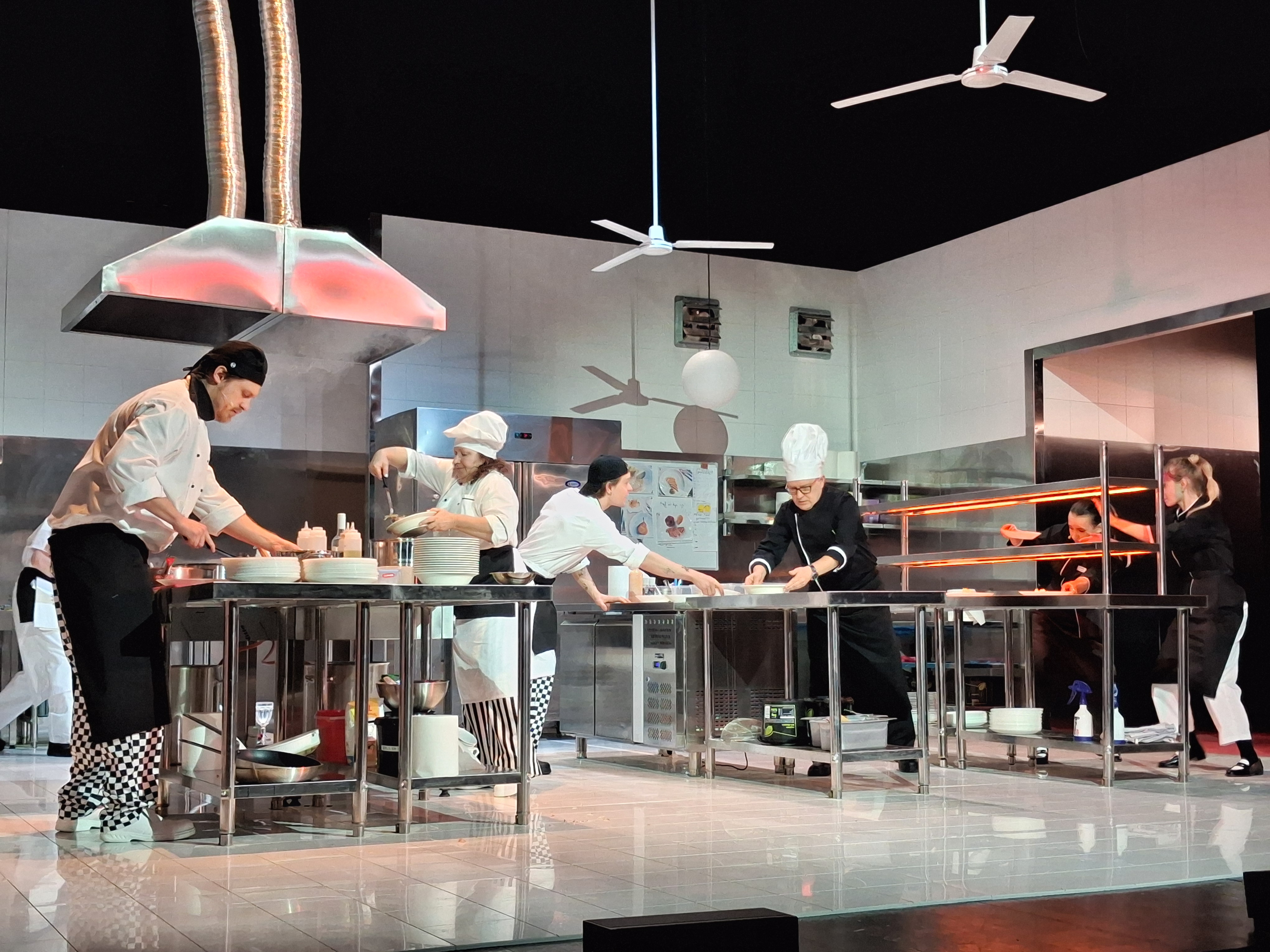 "Na ostrzu noża" to opowieść o ludziach pracujących w restauracyjnej kuchni - miejscu, gdzie codzienne obowiązki zmieniają się w brutalny system zależności, hierarchii i napięć. Na scenie: w pełni funkcjonalna kuchnia oraz gotowane przez aktorów potrawy.