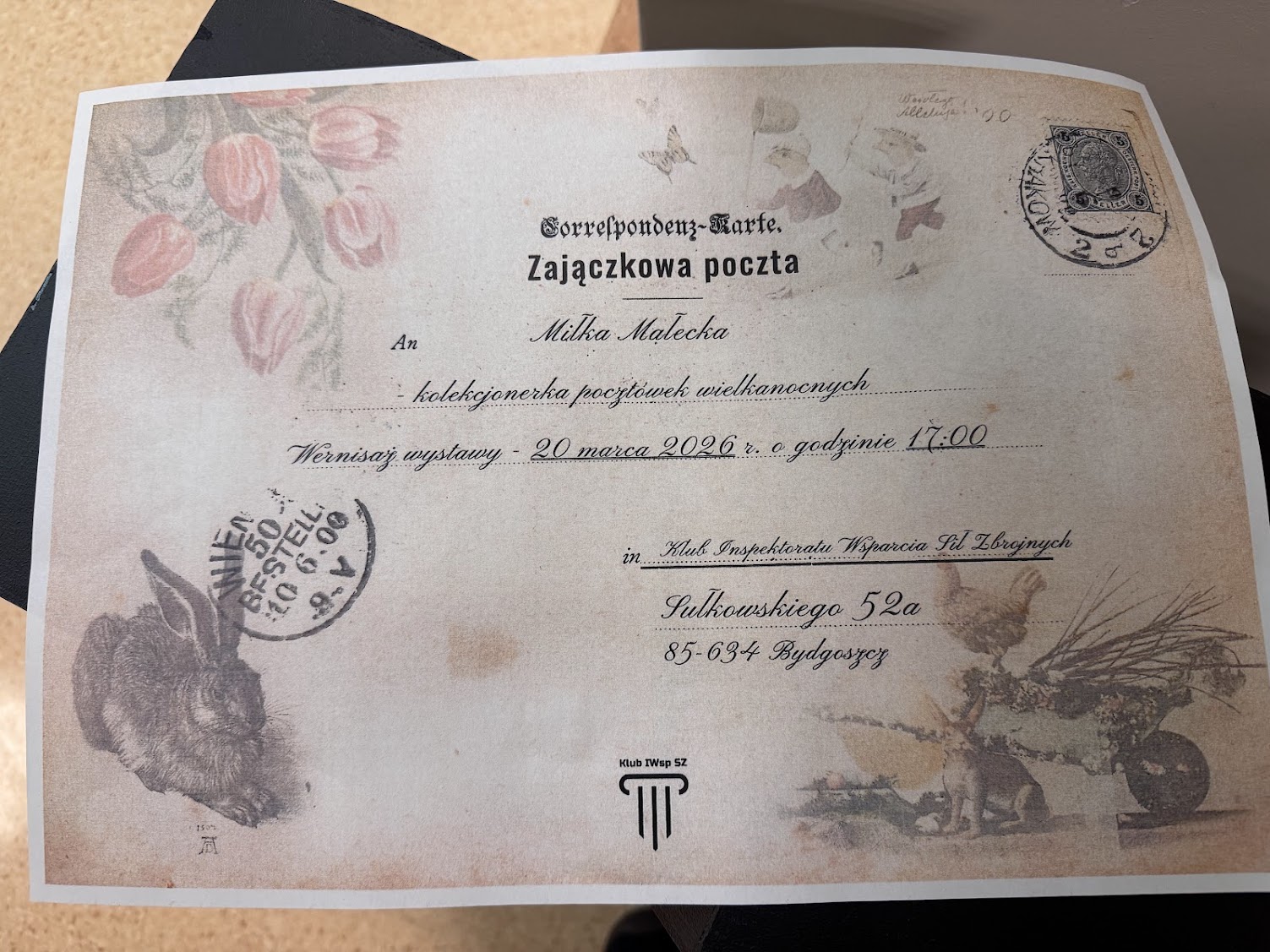 „Zajączkowa poczta” to tytuł wystawy pocztówek z kolekcji Ludmiły Małeckiej. Kilkadziesiąt kartek o tematyce wielkanocnej z różnych lat zapisanych w języku polskim i niemieckim będzie można zobaczyć od jutra w Klubie Inspektoratu Wsparcia Sił Zbrojnych przy ul. Sułkowskiego w Bydgoszczy.